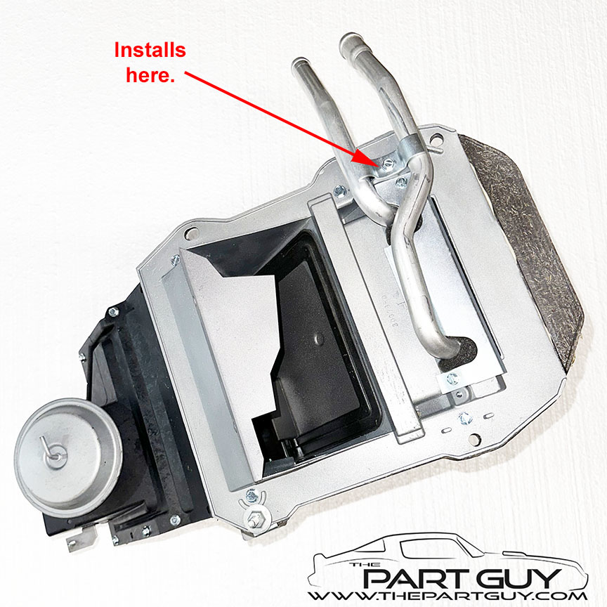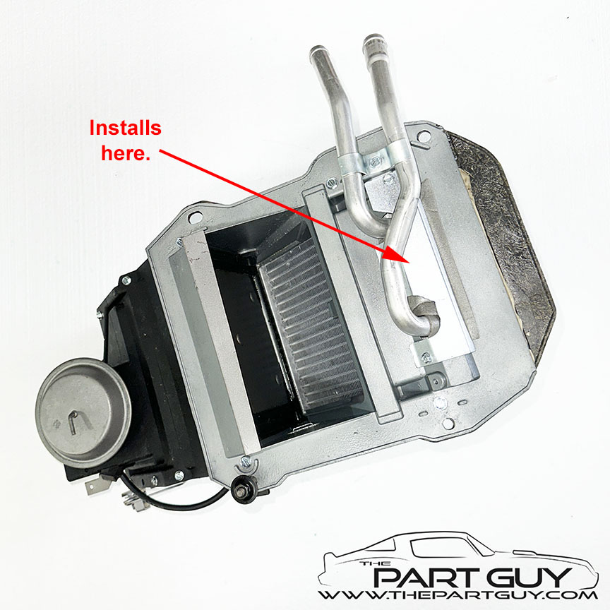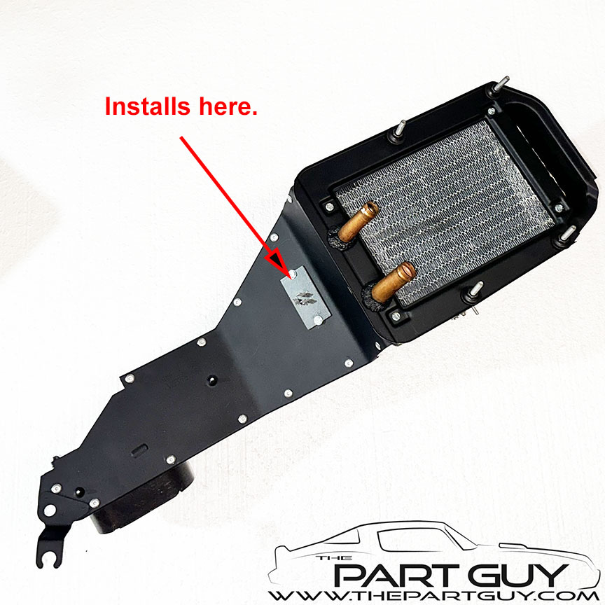 Mid-78-82 Corvette Heater Core Shield WIDE $49.99 USED/Zinc-Plasted NOTE - Some replacement heater cores have the heater tubes in slightly different position, requiring grinding of this bracket to clear. |